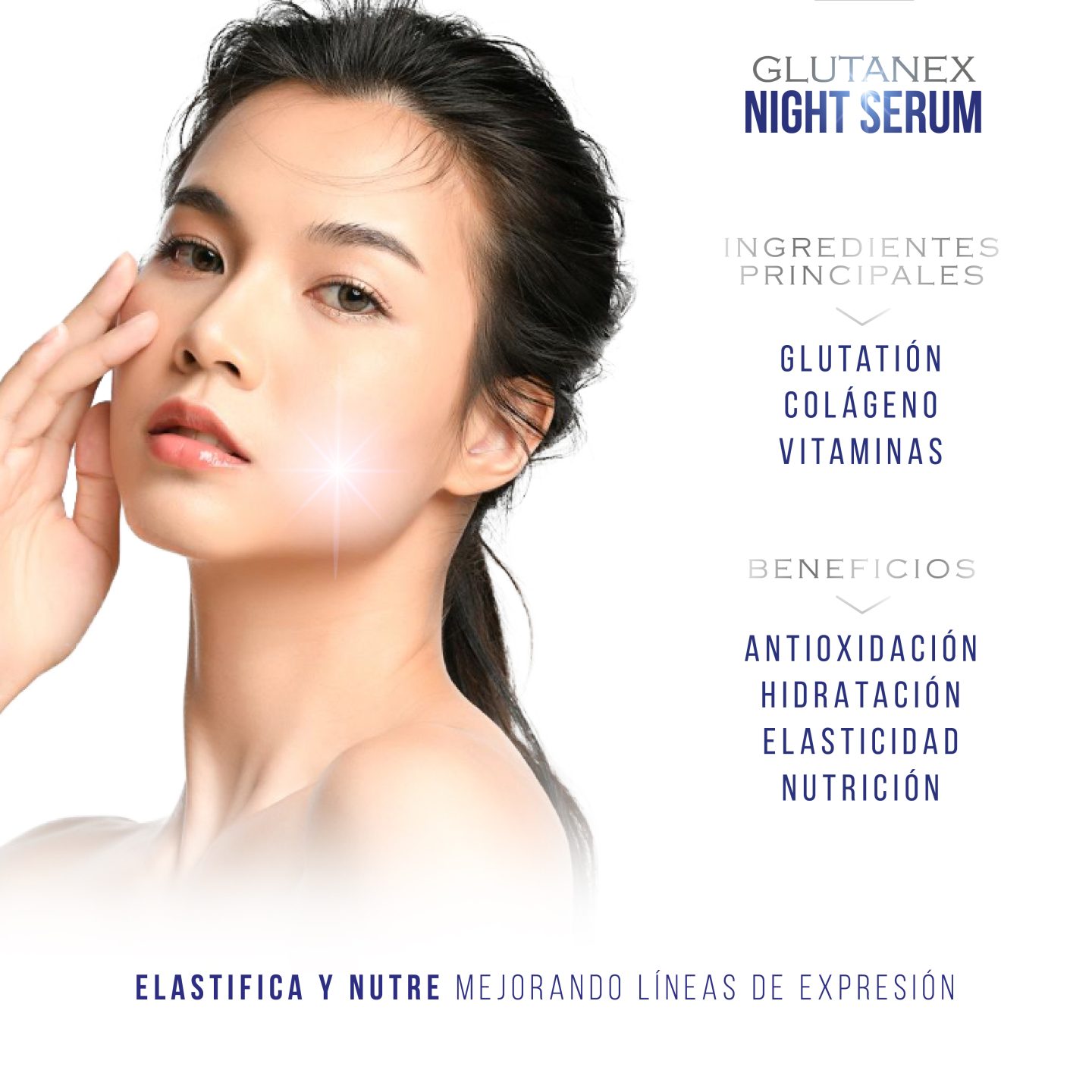 GLUTANEX™ NIGHT SERUM Suero de noche Reafirmante, Nutriente y Antioxidante con Glutatión, Colágeno, Pantenol y Alantoína (30ml.)